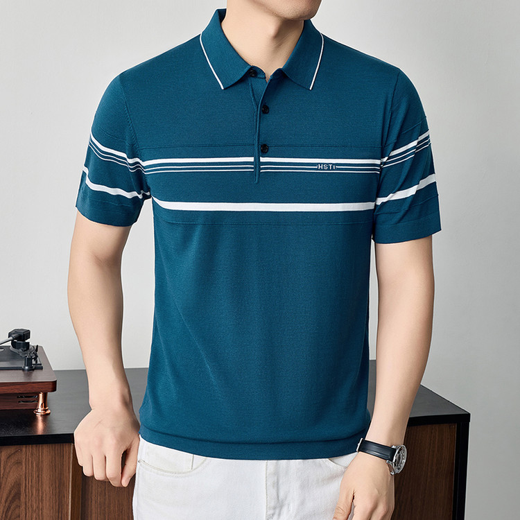 【2026新款短袖】t恤男夏季圆领打底衫半高领丝光棉半袖桑蚕丝V领纯棉翻领冰丝短袖纯色中年立领体恤